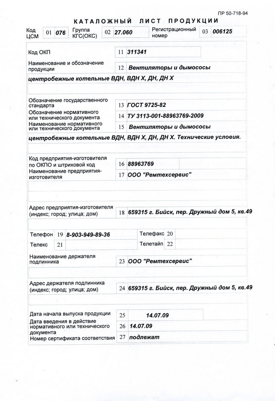 Каталожный лист